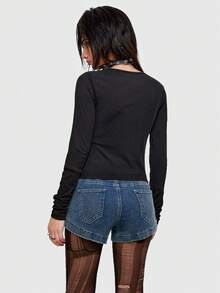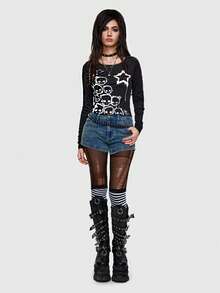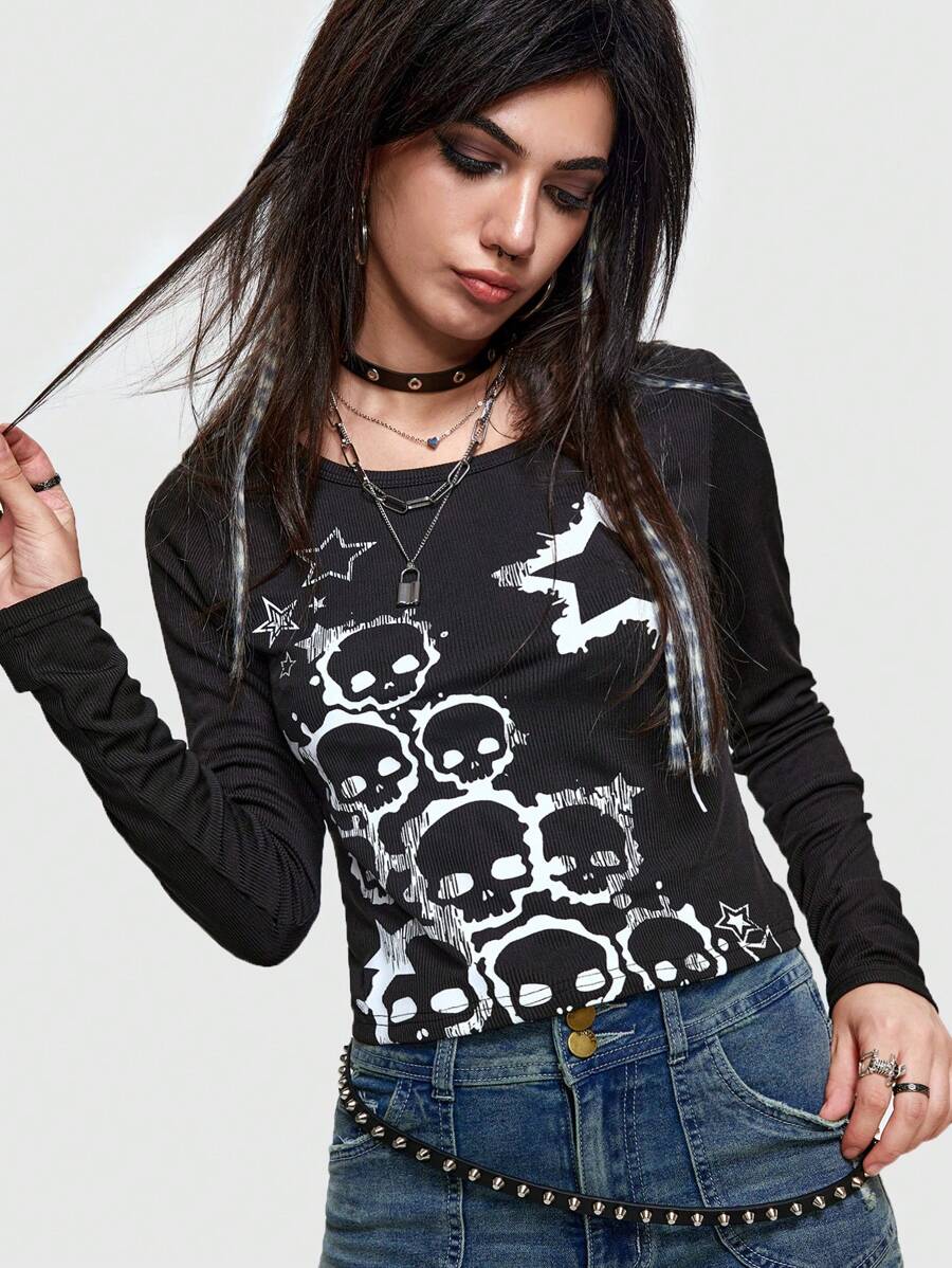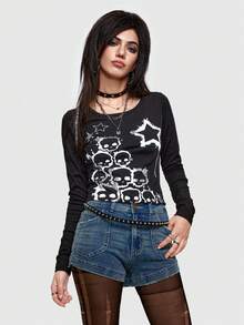 Grunge Punk Camiseta delgada de cráneo & con estampado de estrella