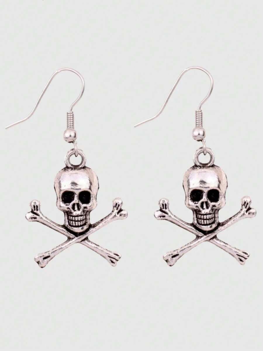 Goth Pendientes largos de cráneo