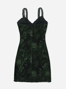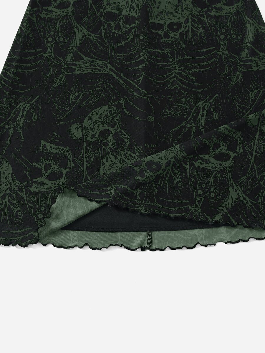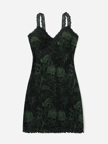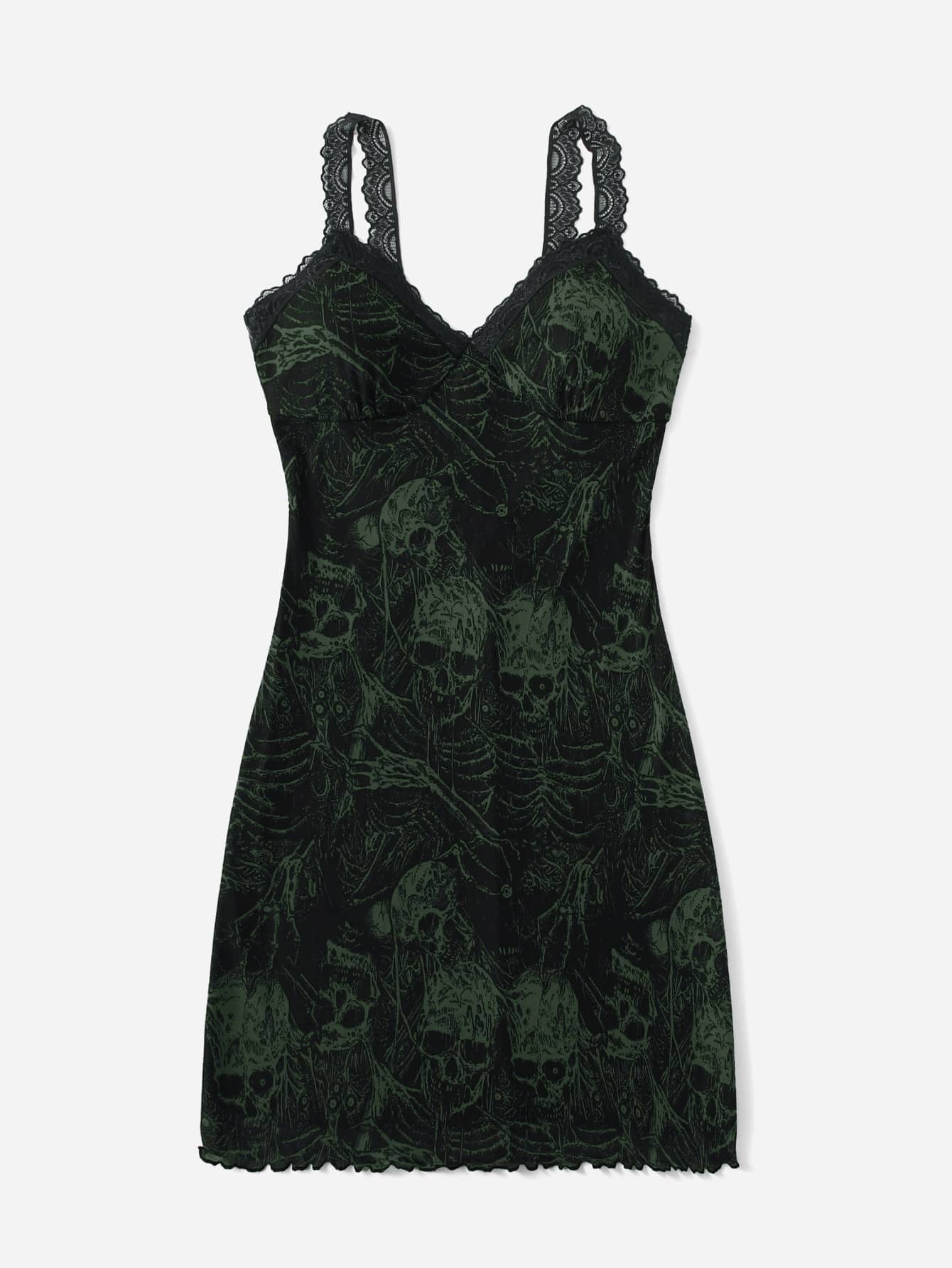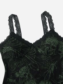 Vestido de tirantes con estampado de cráneo con encaje en contraste