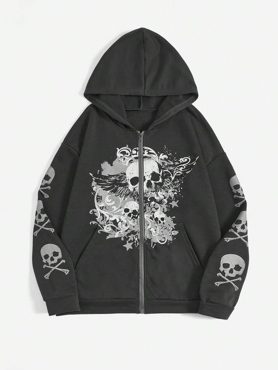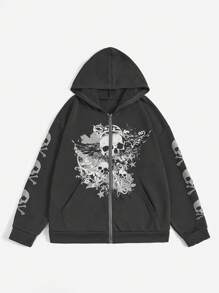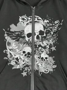 Grunge Punk Capucha con cremallera con estampado de cráneo