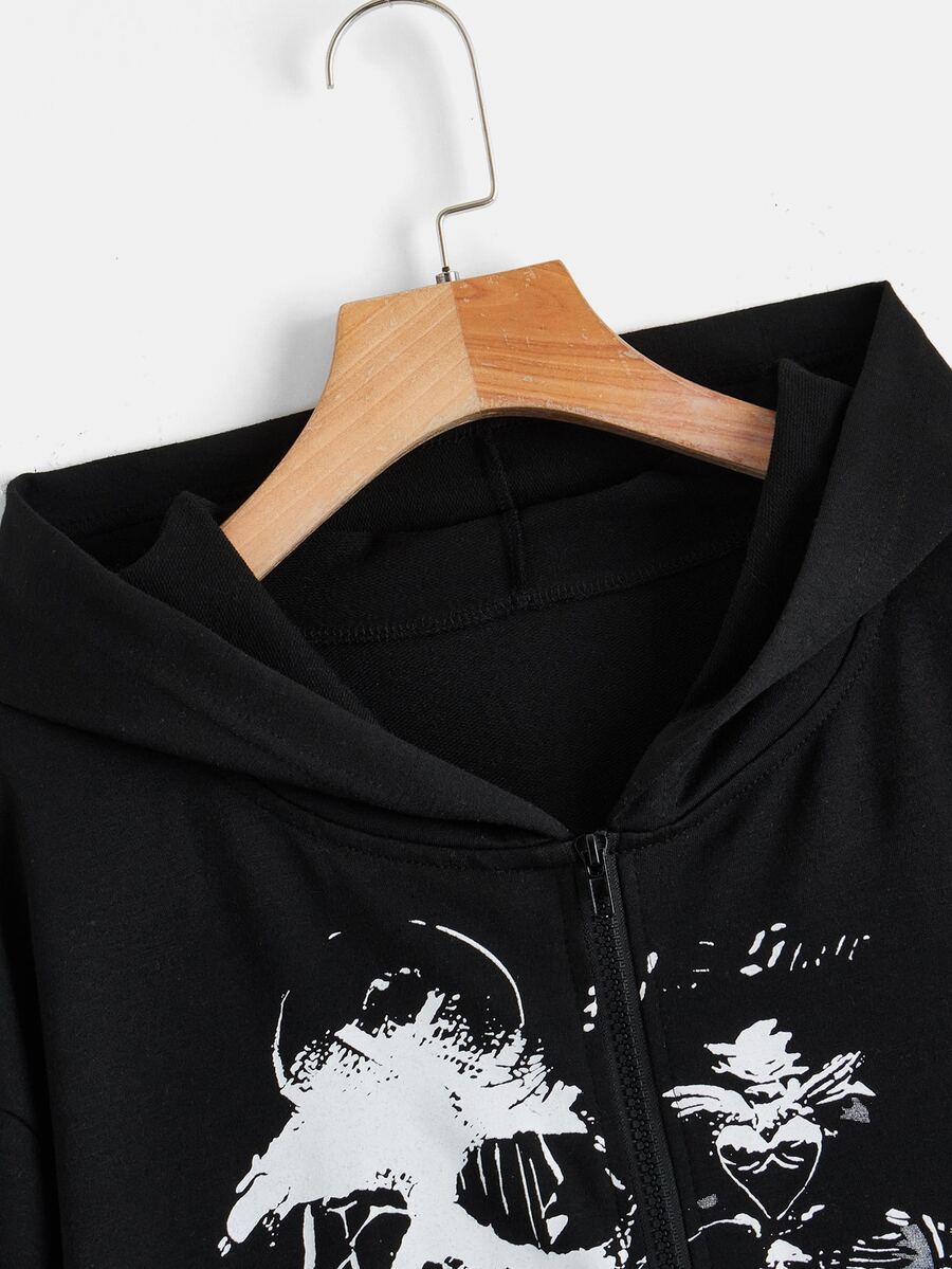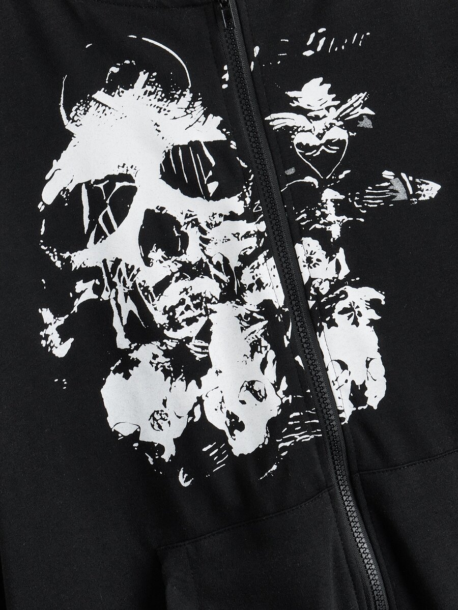 Capucha con estampado de cráneo con cremallera con bolsillo
