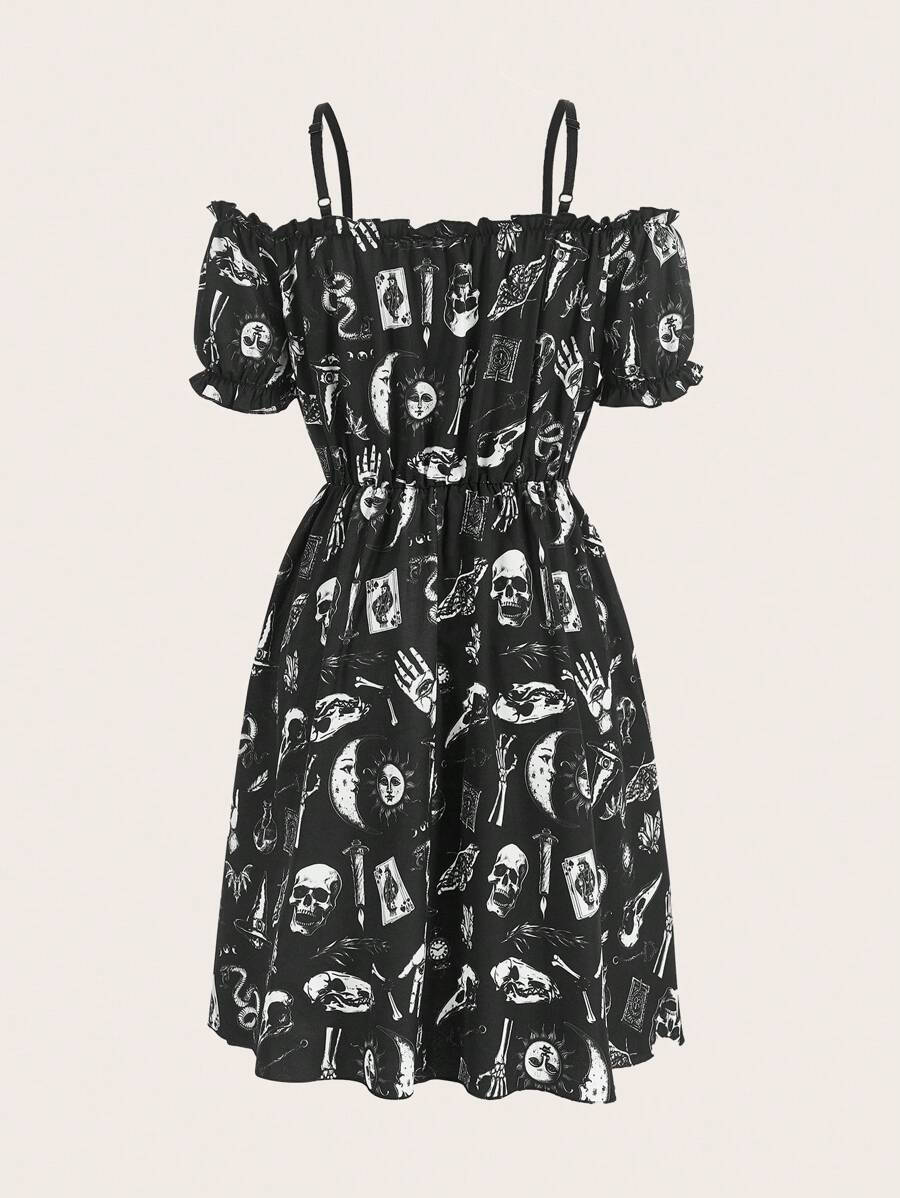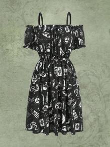 Goth Vestido estampado de cráneo de hombros descubiertos