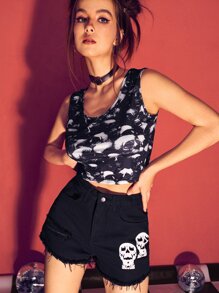 Top tank corto estampado de cráneo