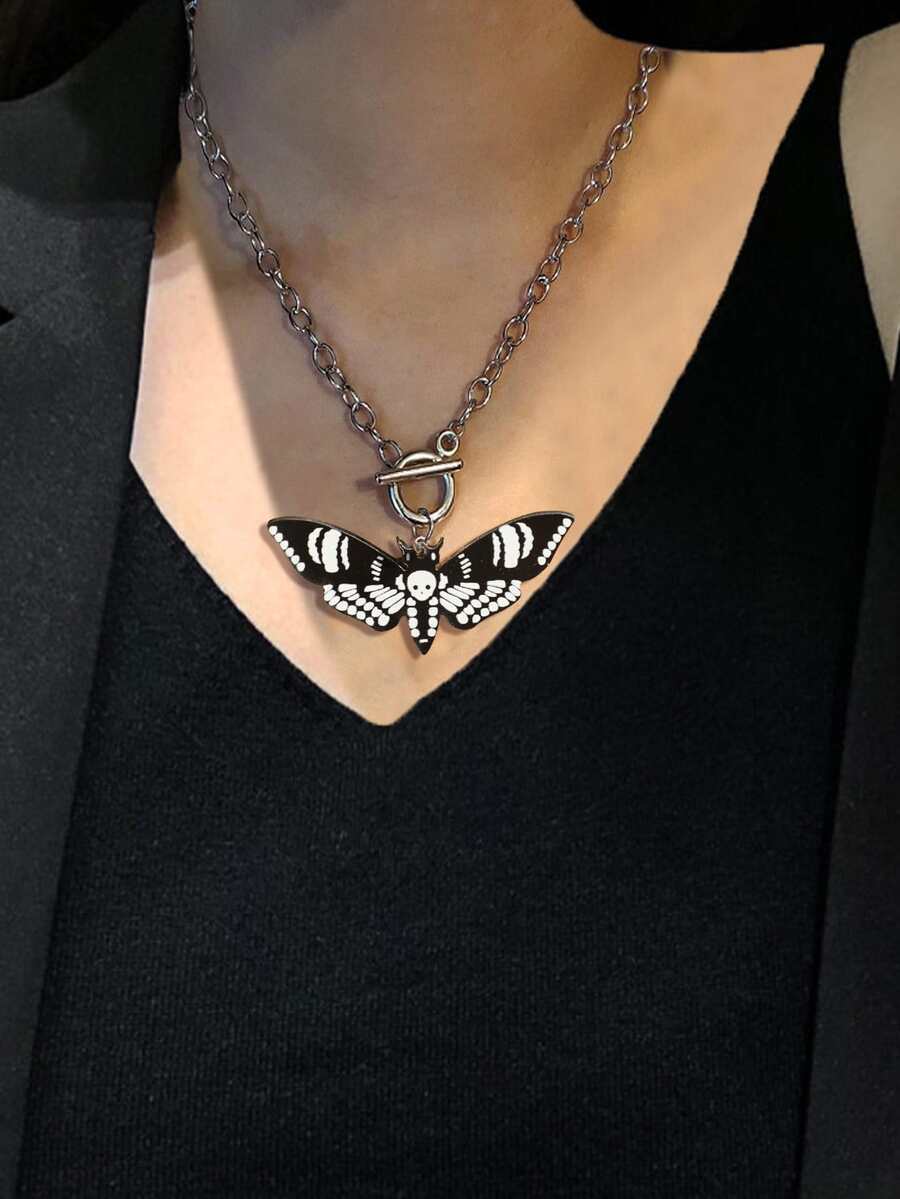 Collar con accesorio estampado de cráneo polilla