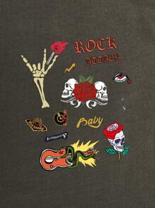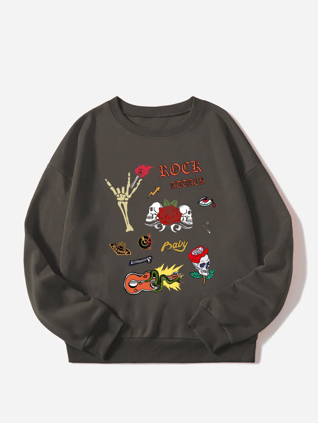 Sudadera de cráneo & con estampado de rosa de hombros caídos