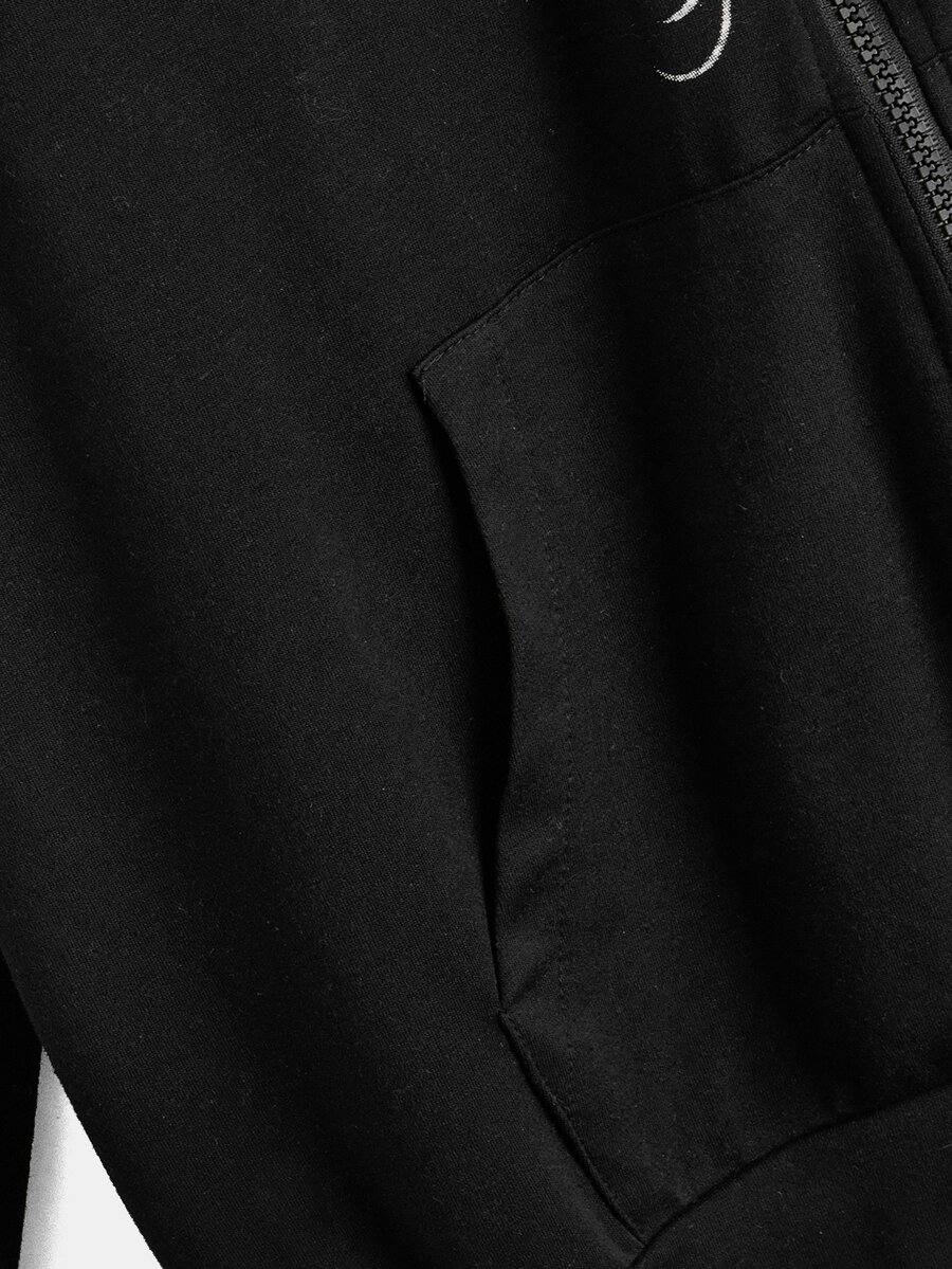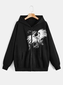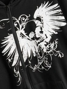 Capucha de cráneo ala con estampado con cremallera con bolsillo