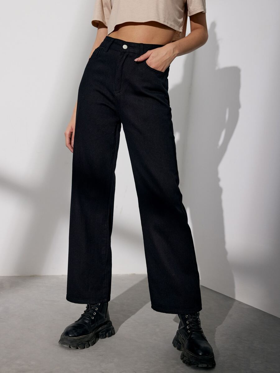 Jeans tipo boyfriend con bolsillo oblicuo de talle alto