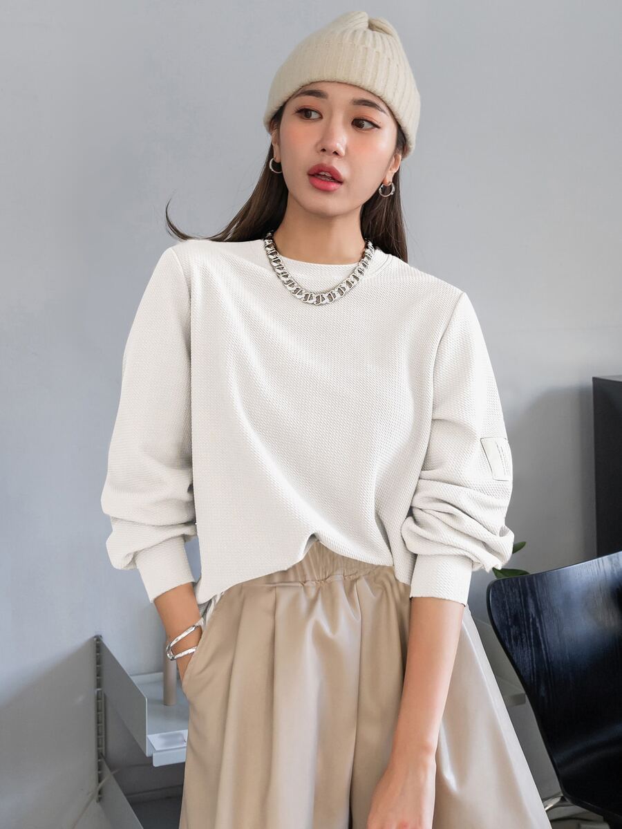 Camiseta con slogan con diseño de parche de manga obispo