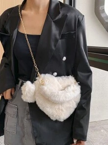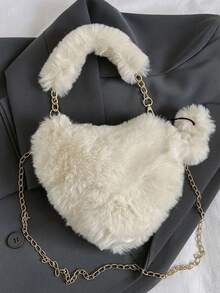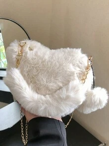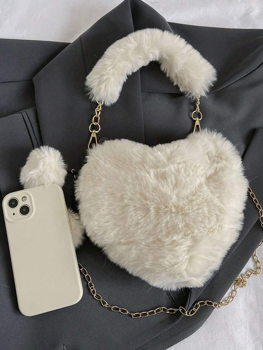 Kawaii Bolsa creativa pequeño casual con diseño de pompón con diseño de corazón mullido para el trabajo