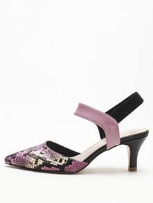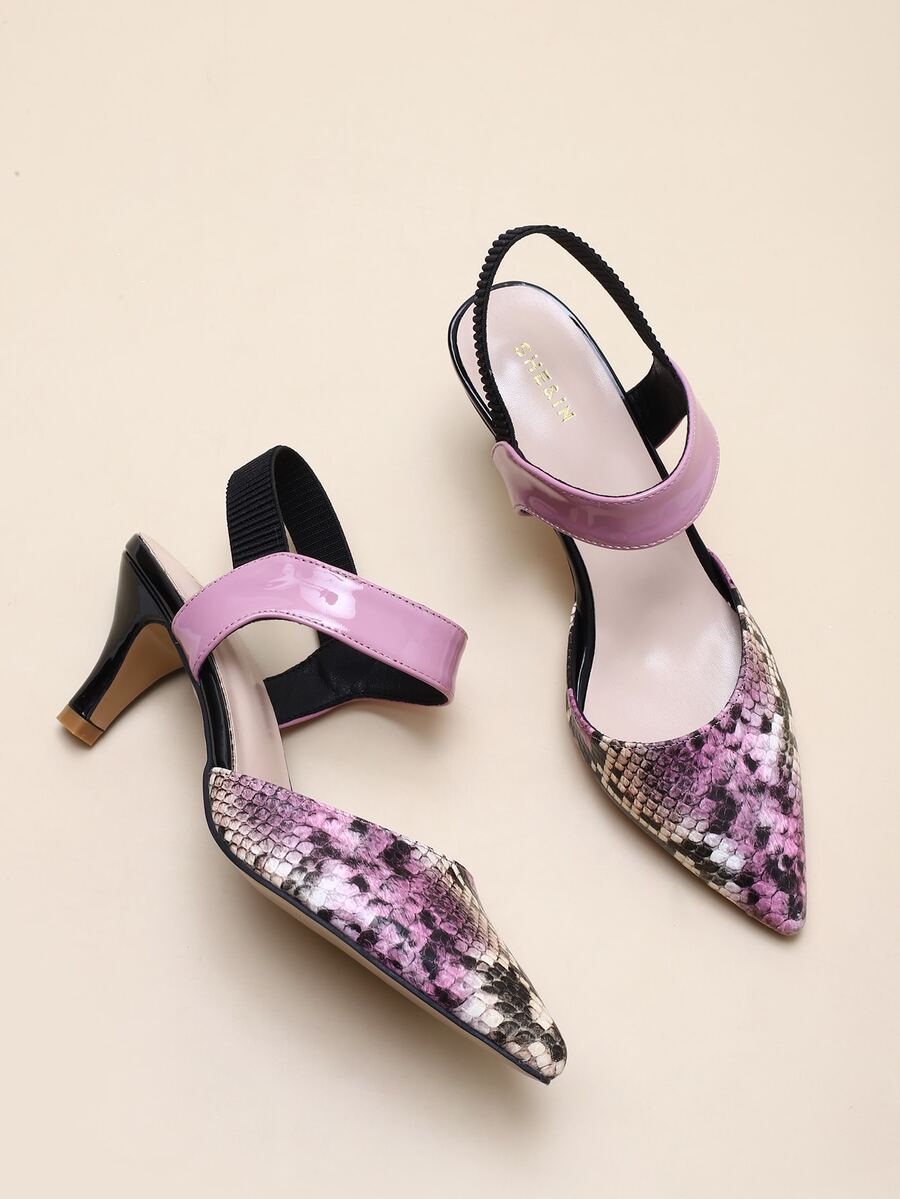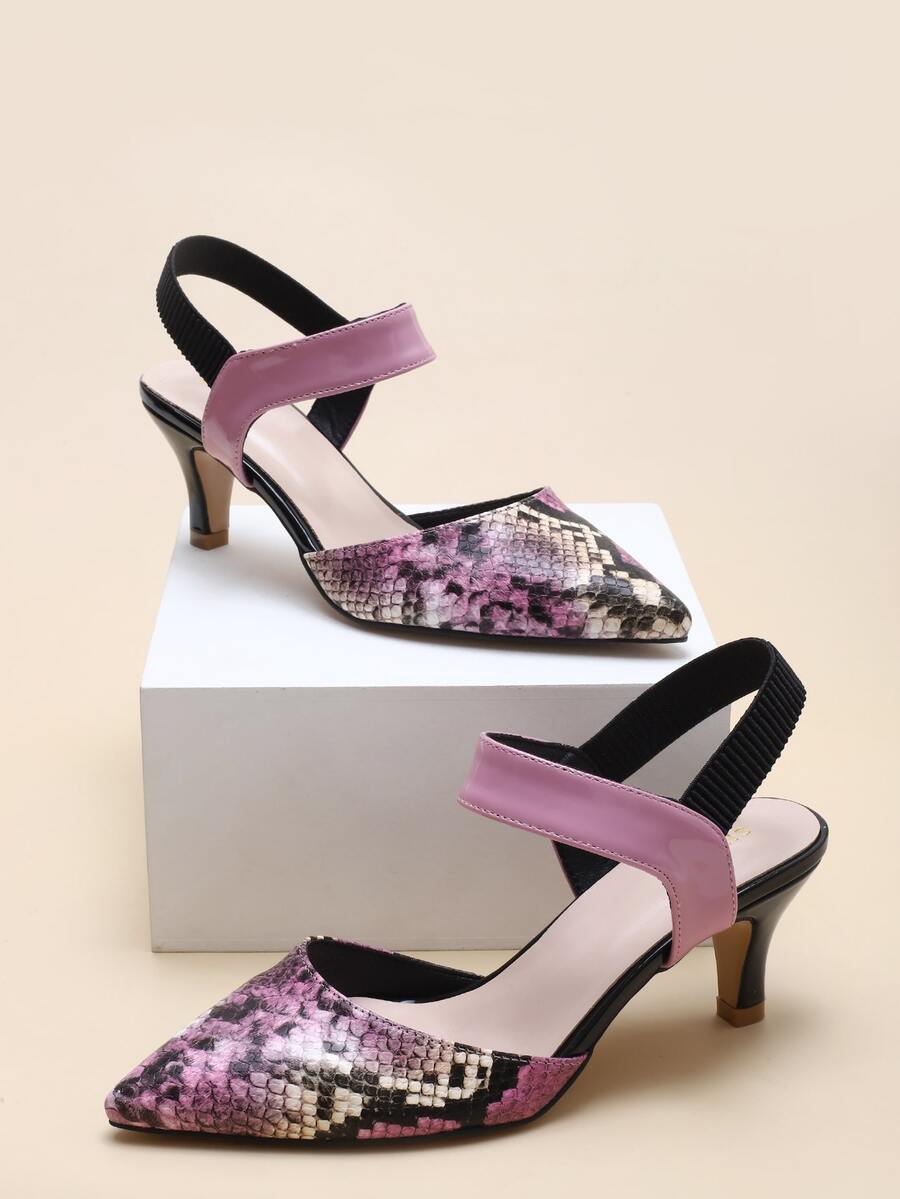 Tacones con tira tobillera con estampado de piel de serpiente