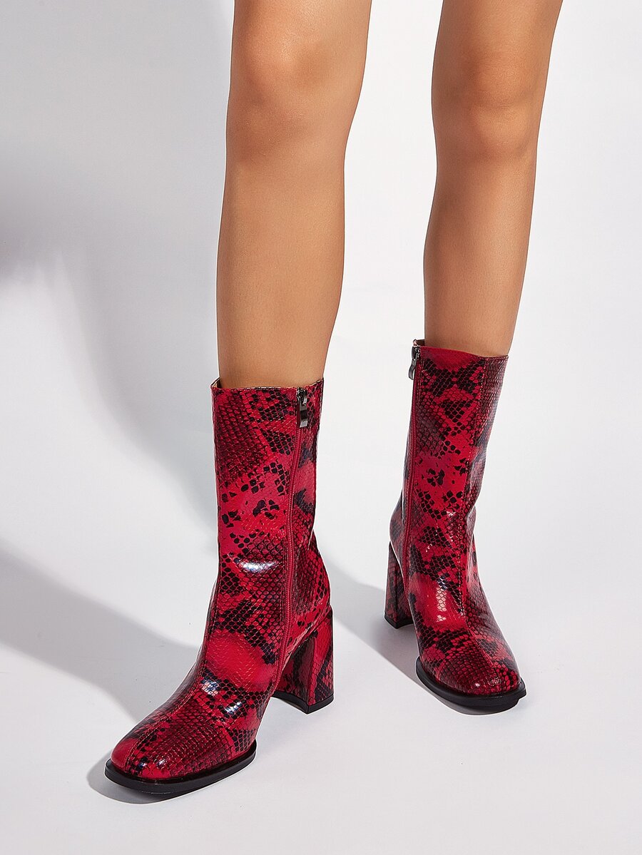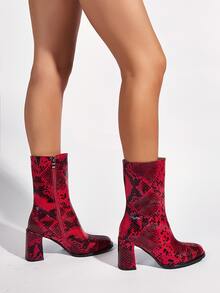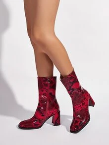 Botas gruesas con cremallera lateral con estampado de piel de serpiente