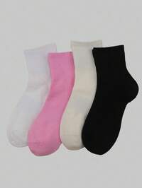 4 pares de calcetines hasta el tobillo de unicolor, casuales y versátiles