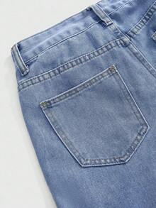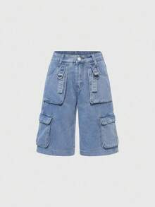 Grunge Punk Pantalones capri casuales de unicolor con botones y bolsillos, verano