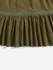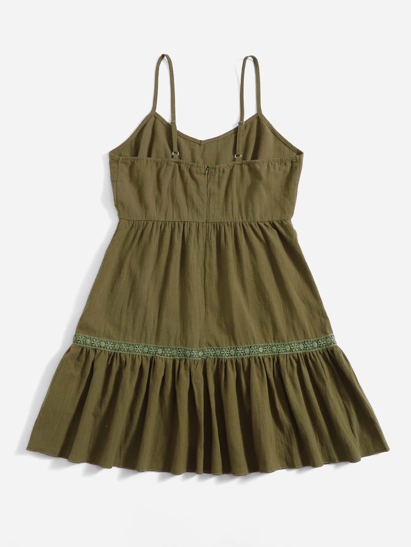 Vestido de tirantes unicolor con encaje en contraste bajo con fruncido