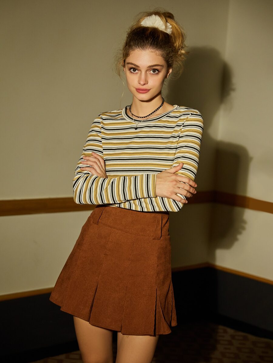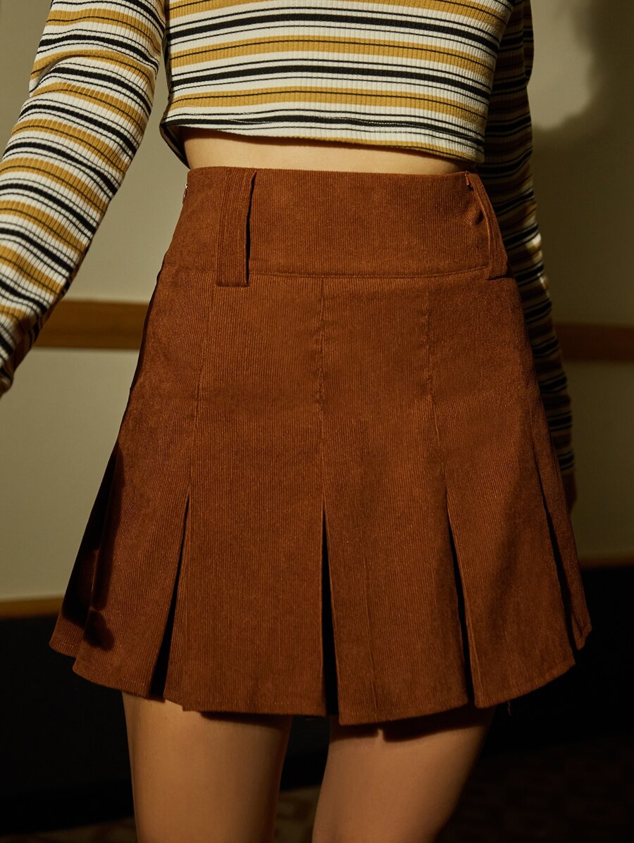 Falda fruncido unicolor de pana