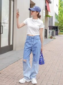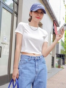 Camiseta corta unicolor de cuello redondo