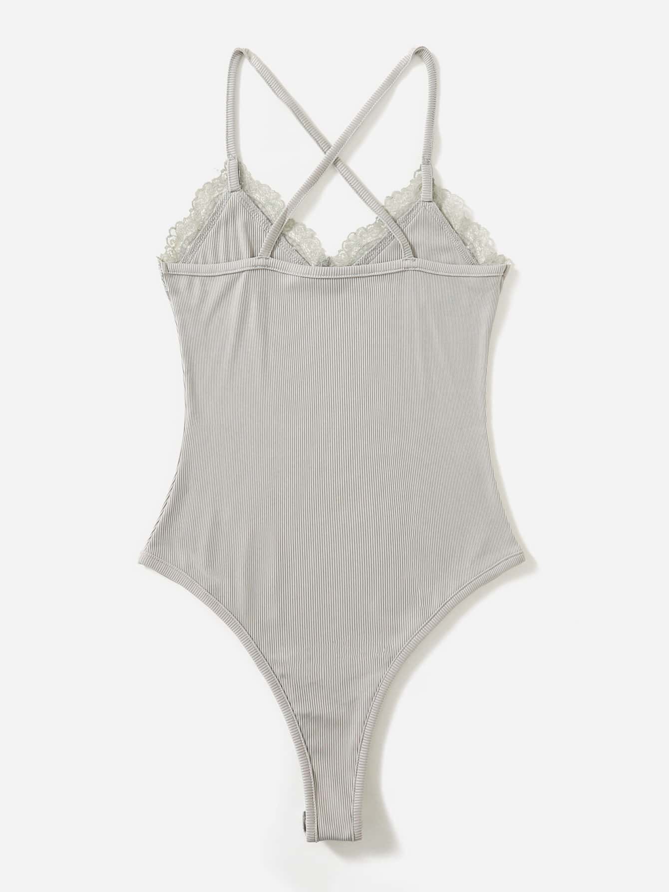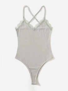 Bodys Encaje en contraste Canalé Liso Casual