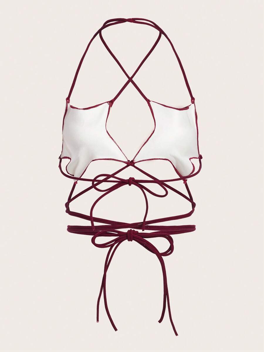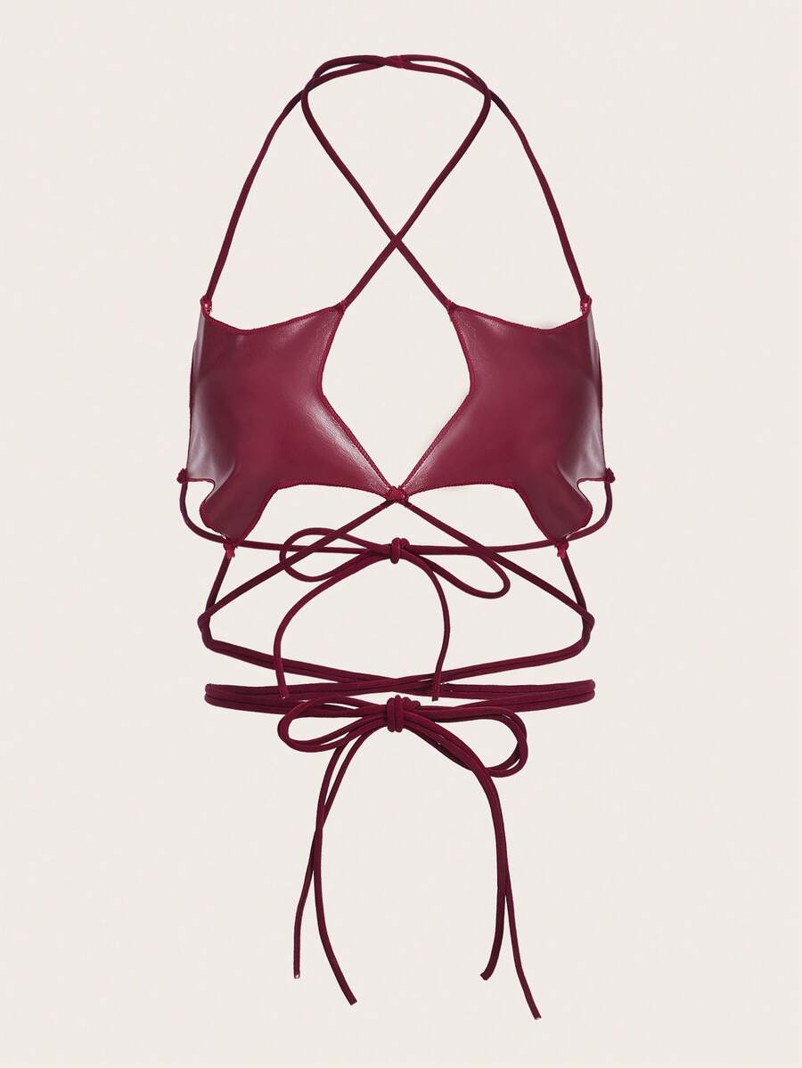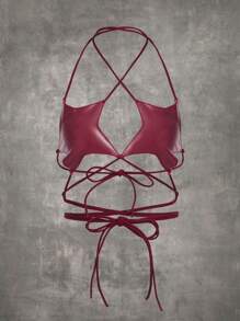Grunge Punk Sujetador unicolor con tira cruzada halter