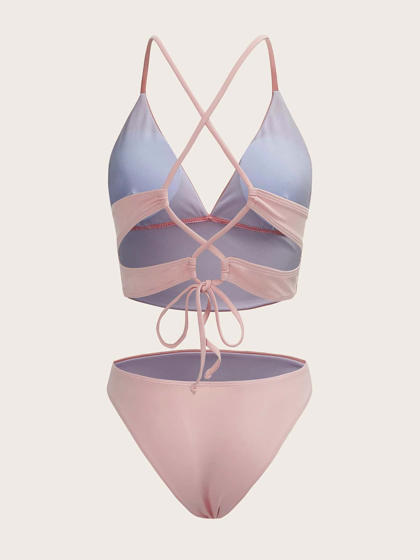 Bikini sólido con tiras cruzadas y cordones de encaje