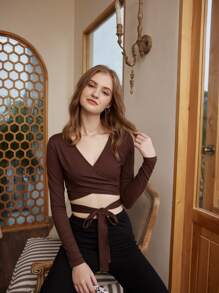 Top unicolor con tira cruzada de cintura con cordón