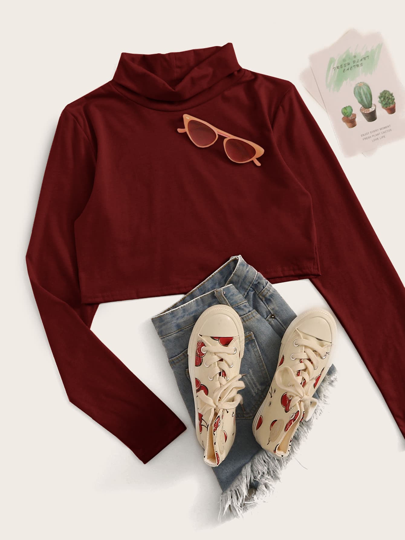 Camiseta corta de cuello alto unicolor