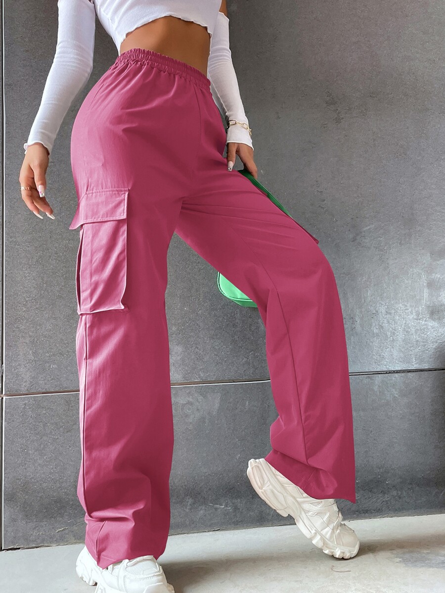 Pantalones cargo unicolor de talle alto con bolsillo con solapa