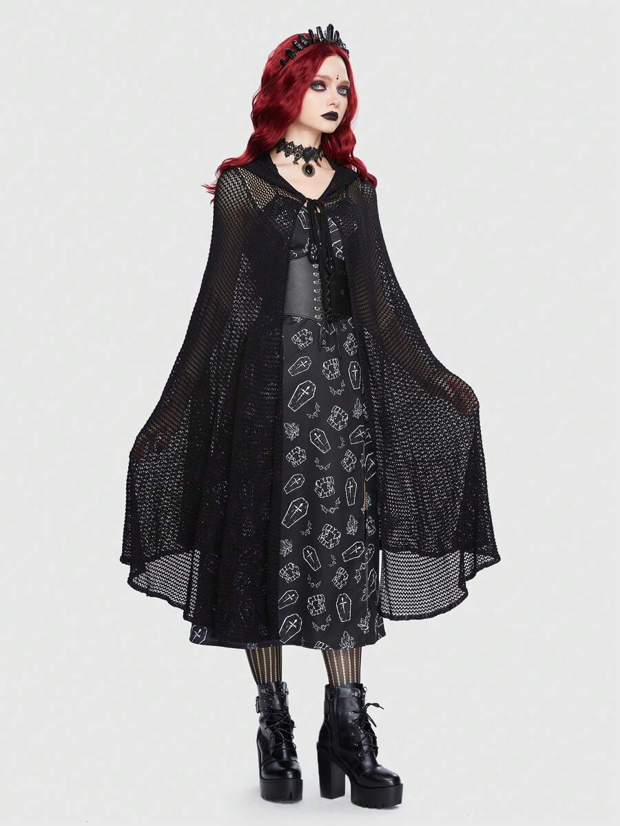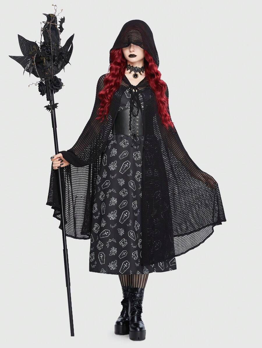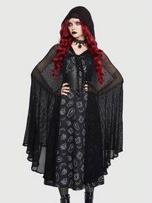 Goth Cárdigan capa unicolor con capucha