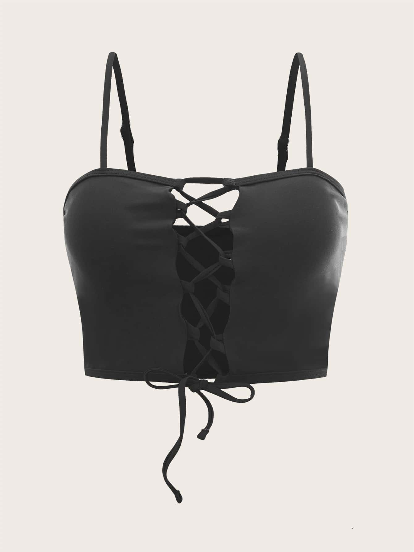 Top bikini unicolor con cordón