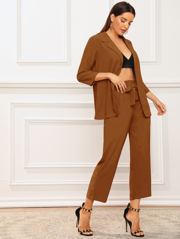 Outfit de dos piezas Cinta Liso Marrón Elegante