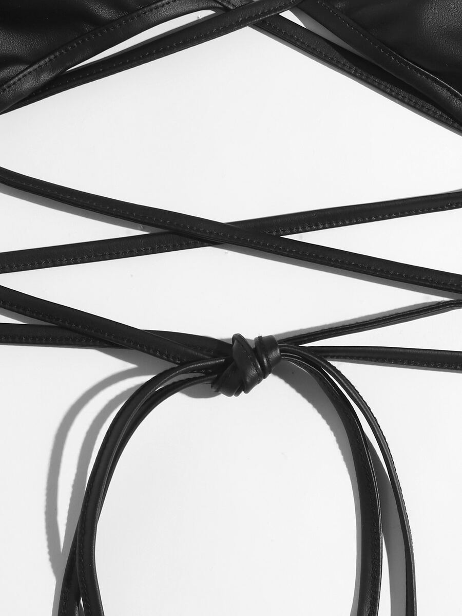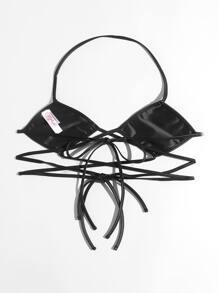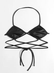 Sólido Bralette De PU De Estilo Halter Con Cruzado En La Parte Delantera