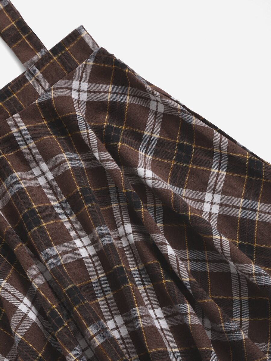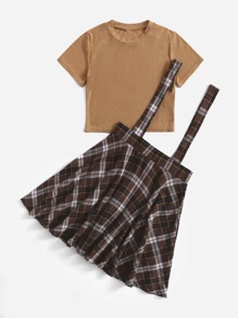 unicolor de canalé Camiseta & de cuadros Falda con tiras