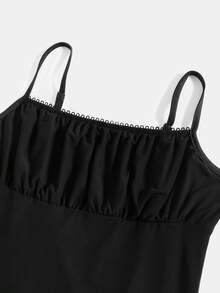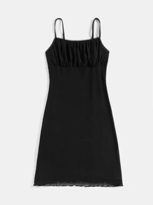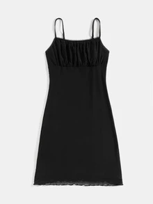 Vestido de tirantes ajustado unicolor pecho con fruncido