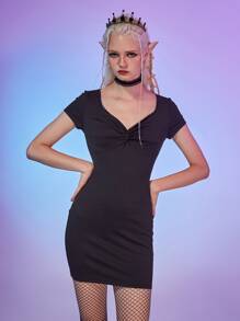 Vestido unicolor fruncido