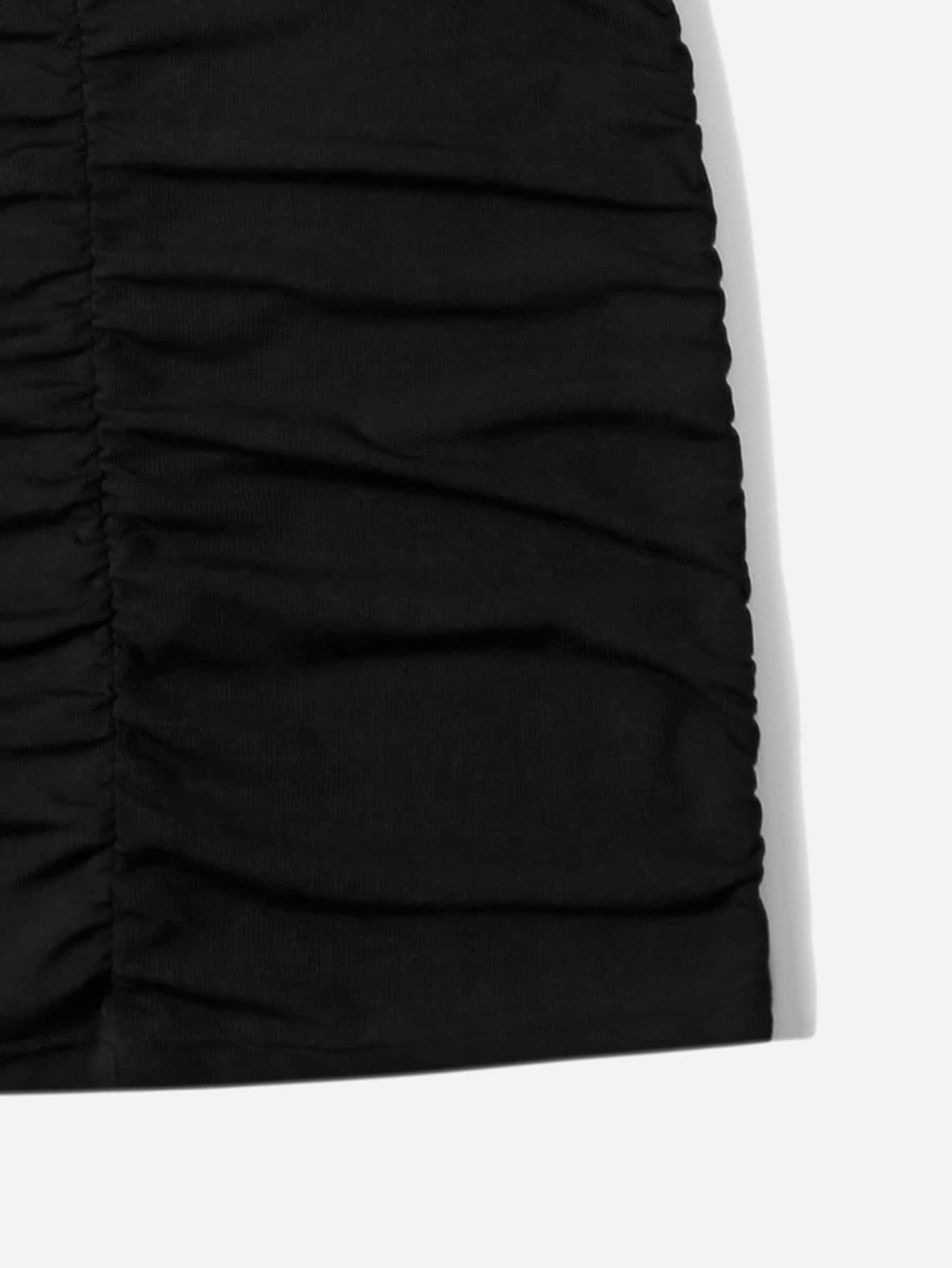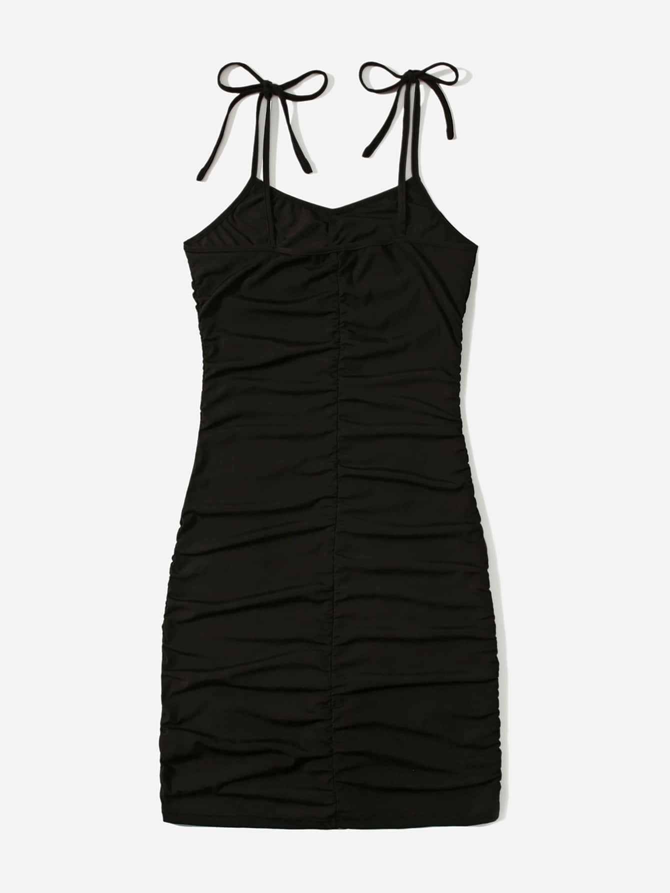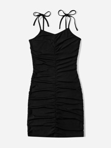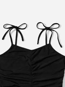 Vestido Sólido Con Hombros Fruncidos Y Tirantes Atados