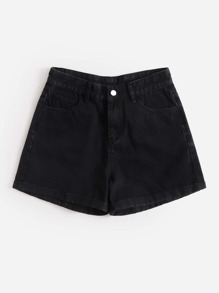 Shorts en mezclilla unicolor con bolsillo oblicuo