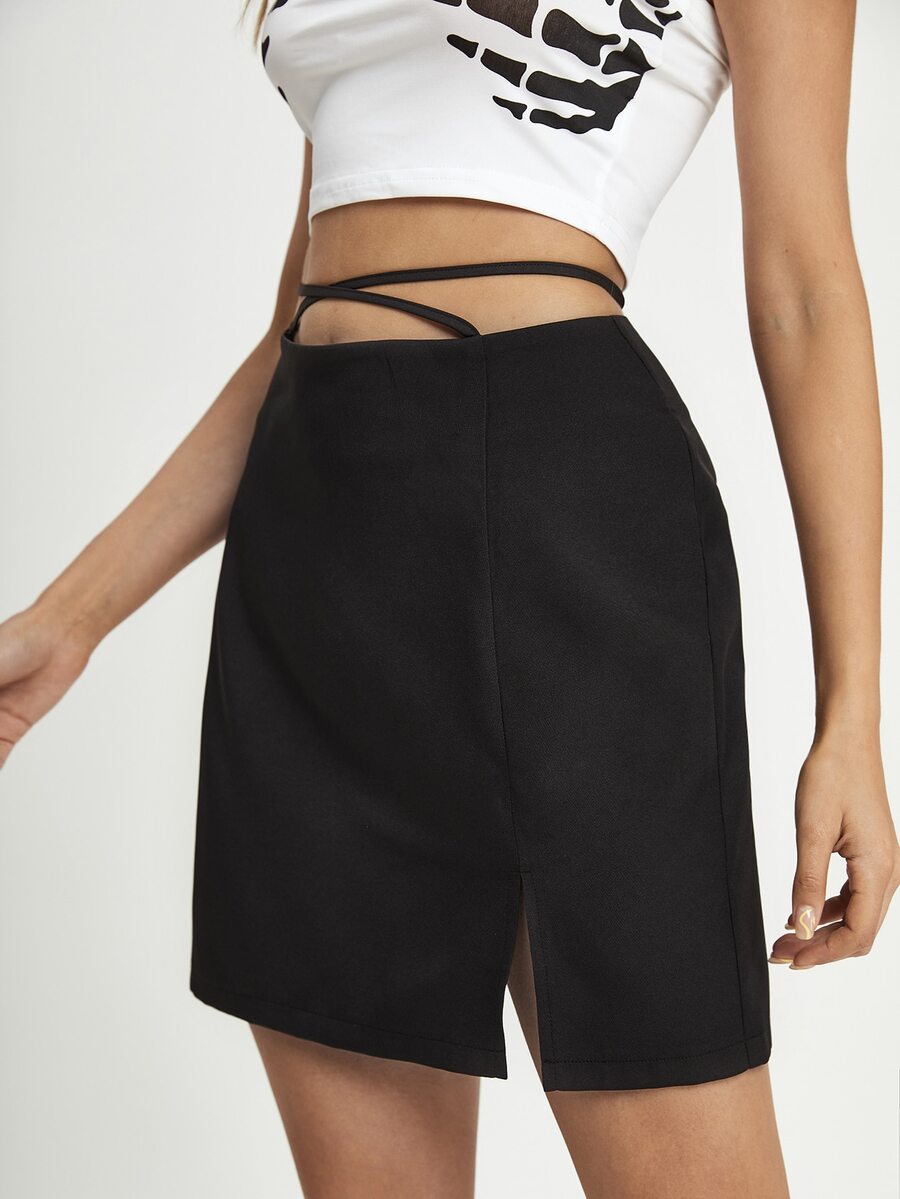 Falda unicolor con abertura con tira cruzada