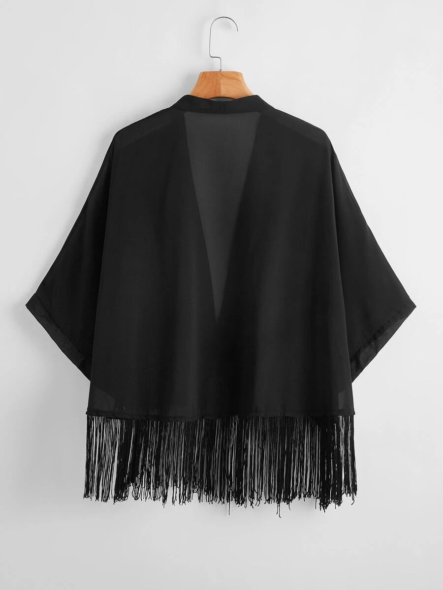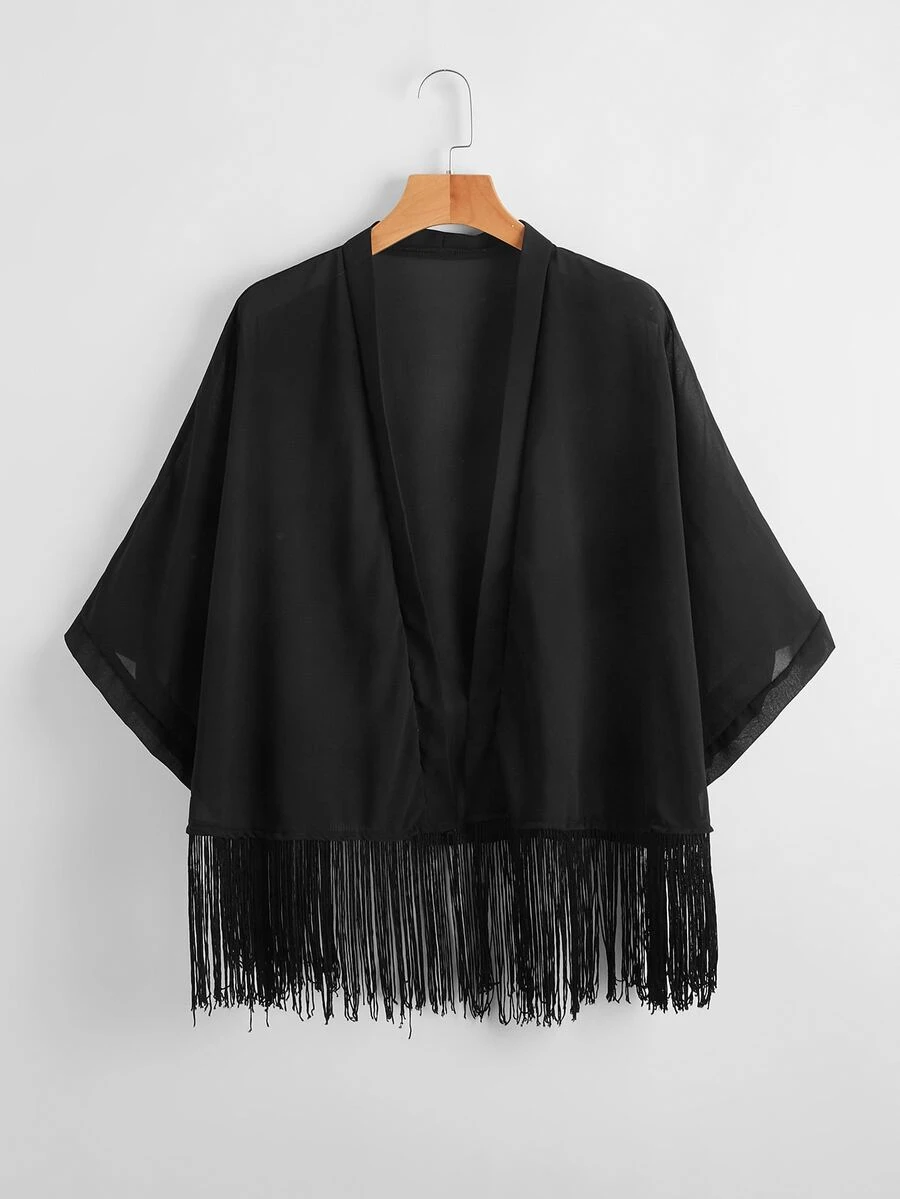 Kimono unicolor con fleco bajo