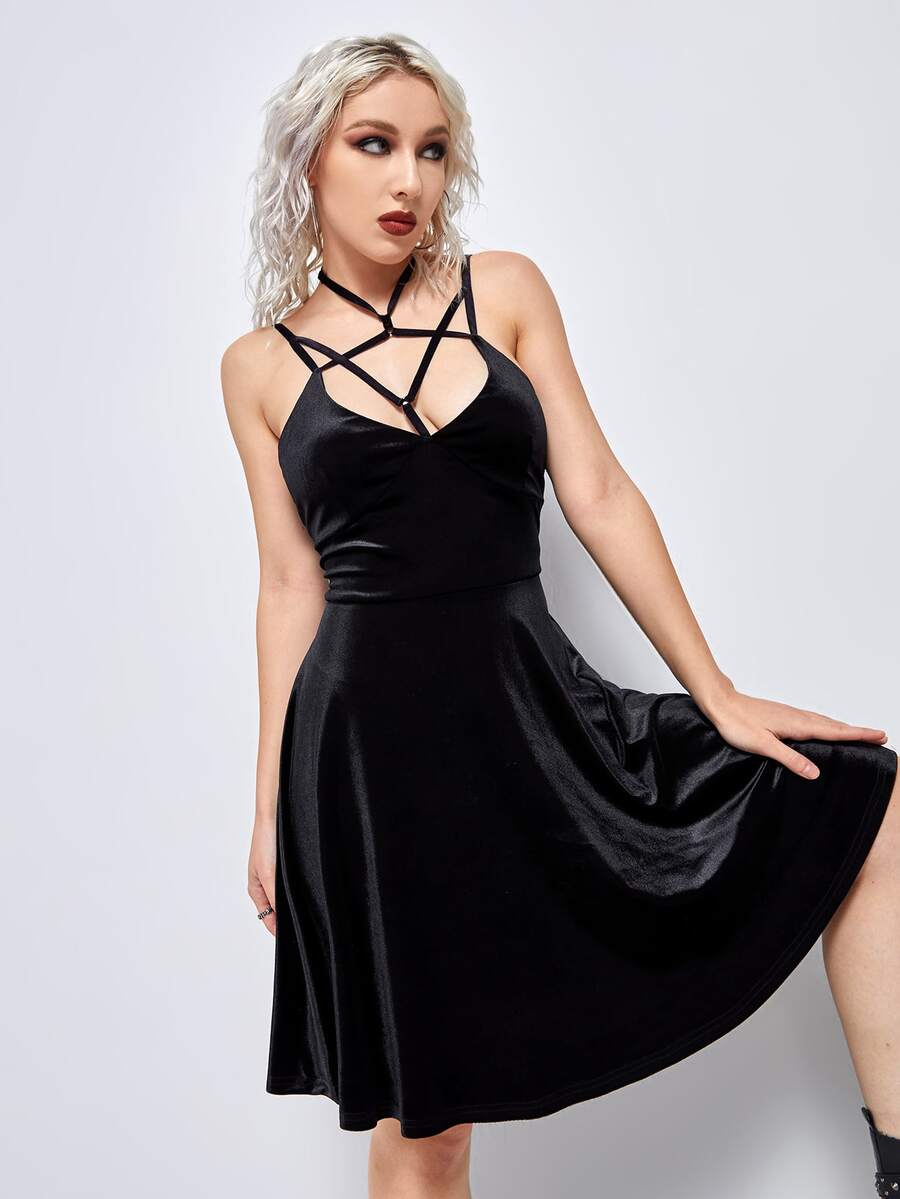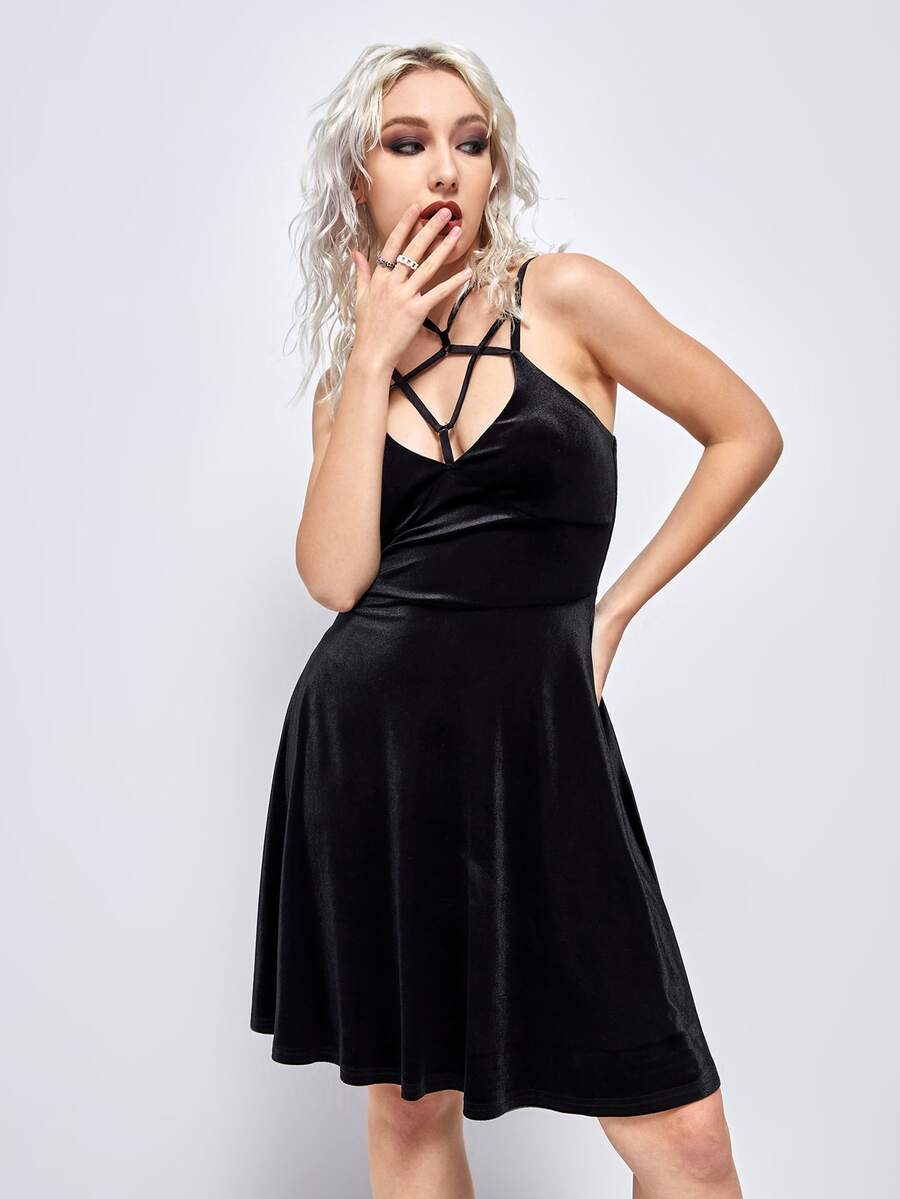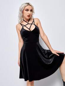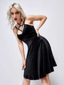 Vestido de tirantes unicolor de terciopelo