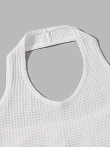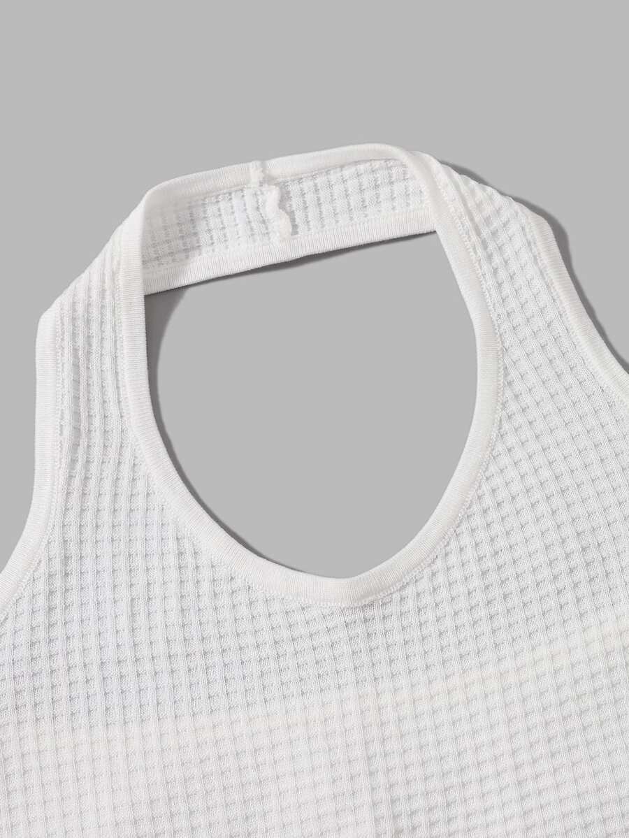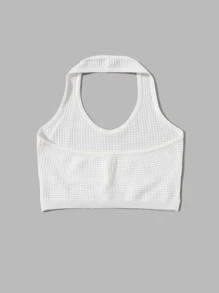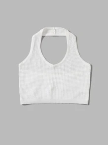 Top De Cuello Halter Sólido Con Tejido De Punto De Panal