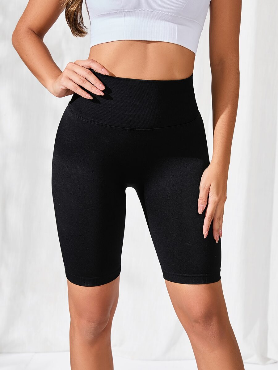 Shorts deportivos unicolor de cintura ancha