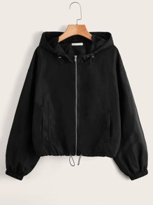 Cazadora unicolor con cremallera con capucha