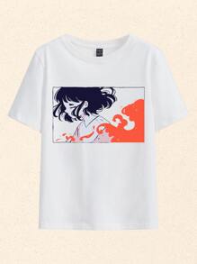 Sophia Patch Camiseta con estampado de figura de cuello redondo