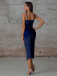 Double Crazy vestido slip de terciopelo cruzado de muslo con abertura