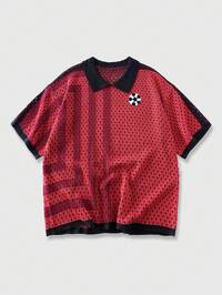 Street Life Camiseta de punto de manga corta con diseño jacquard y abertura de un solo abotonado para hombre