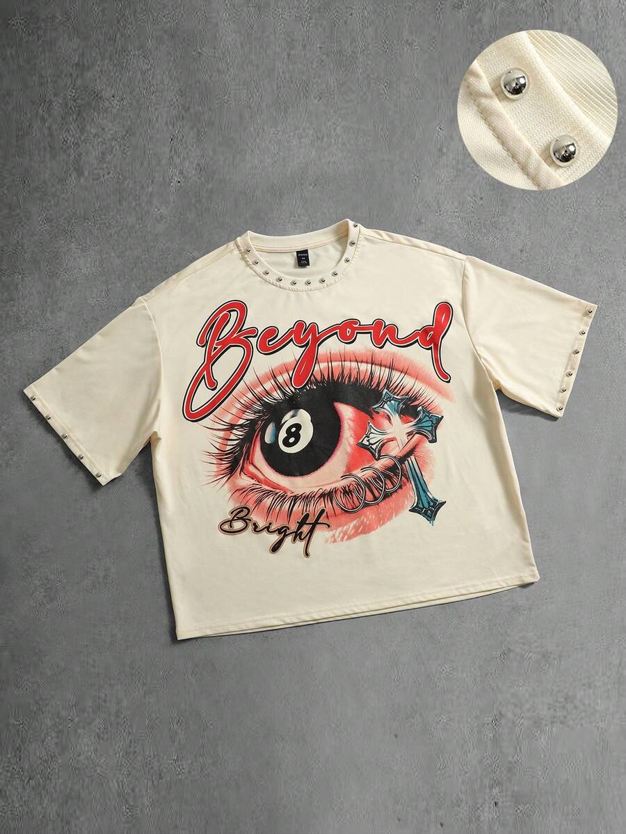 Camiseta de manga corta con estampado gráfico y tachuelas para hombre