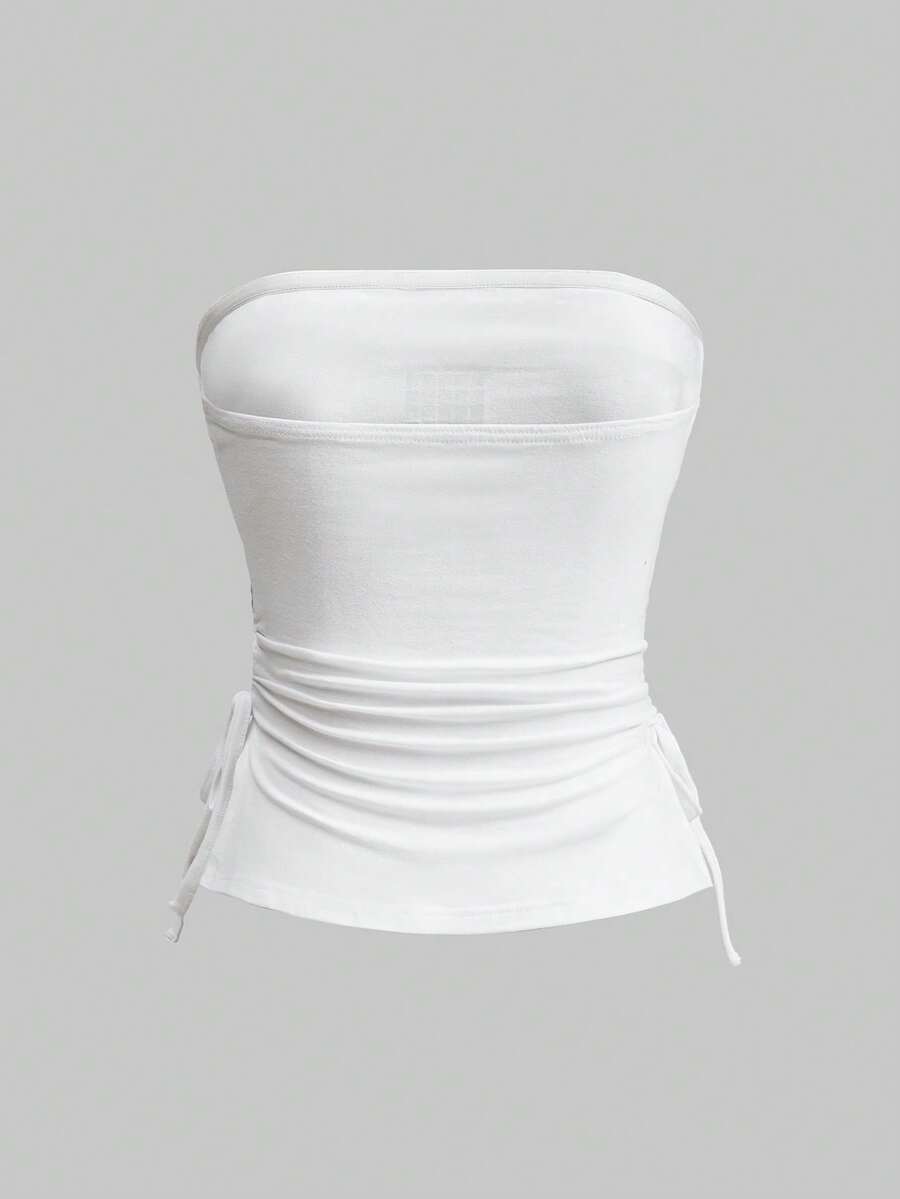J-Fashion Top corto de mujer con cordón, abertura y decoración de cruz con tachuelas y strass en color negro, estilo Y2K