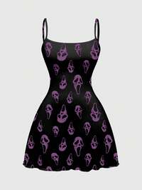 Goth Vestido de mujer gótico, oscuro, de Halloween, de San Valentín, con esqueleto blanco y negro, transparente, tipo bustier, sin mangas, punk, de calle, sexy, sin espalda, sin mangas ROMWE Avant Vestido mini con estampado impreso, adecuado para primavera/verano, festivales de música, geisha, caligrafía china, nuevo estilo chino, sexy, gótico oscuro, calle, vintage, top tubo