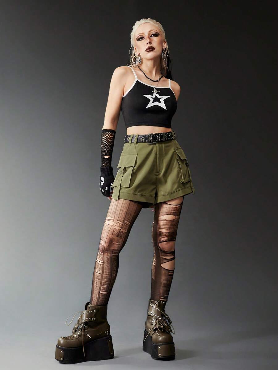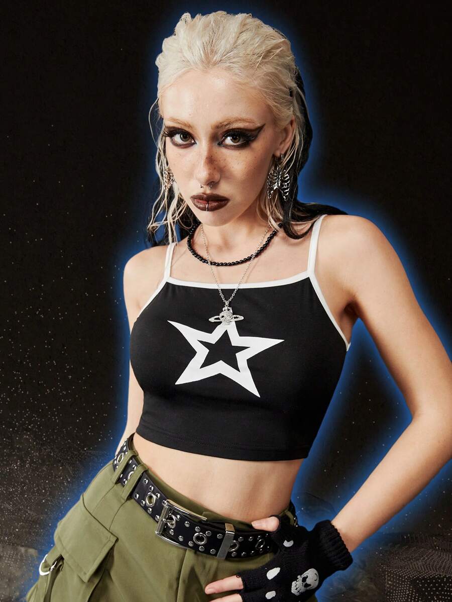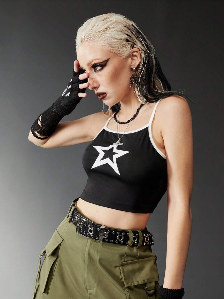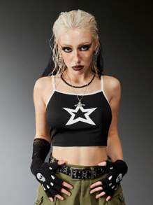 Grunge Punk Top de tirantes con estampado de estrella unido en contraste