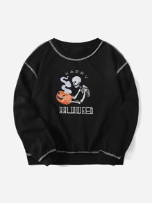 Sudadera ribete con puntada con letra con estampado de Halloween