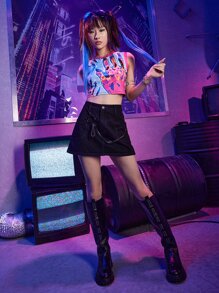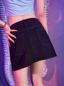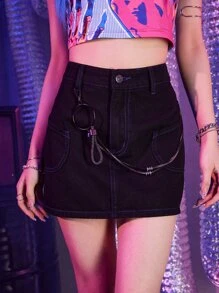 Falda en mezclilla ribete con puntada con bolsillo con diseño de cadena